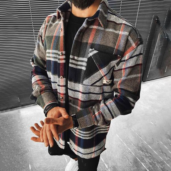 Casual Large Plaid Textured Button Long Sleeve Jacket