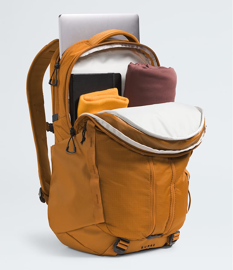 With a 31-liter capacity, the Surge Backpack is a spacious, streamlined pack you can take almost anywhere. Clever design features like a water-repellent finish, 16'' laptop sleeve, and the ability to stand unsupported make it indispensable.